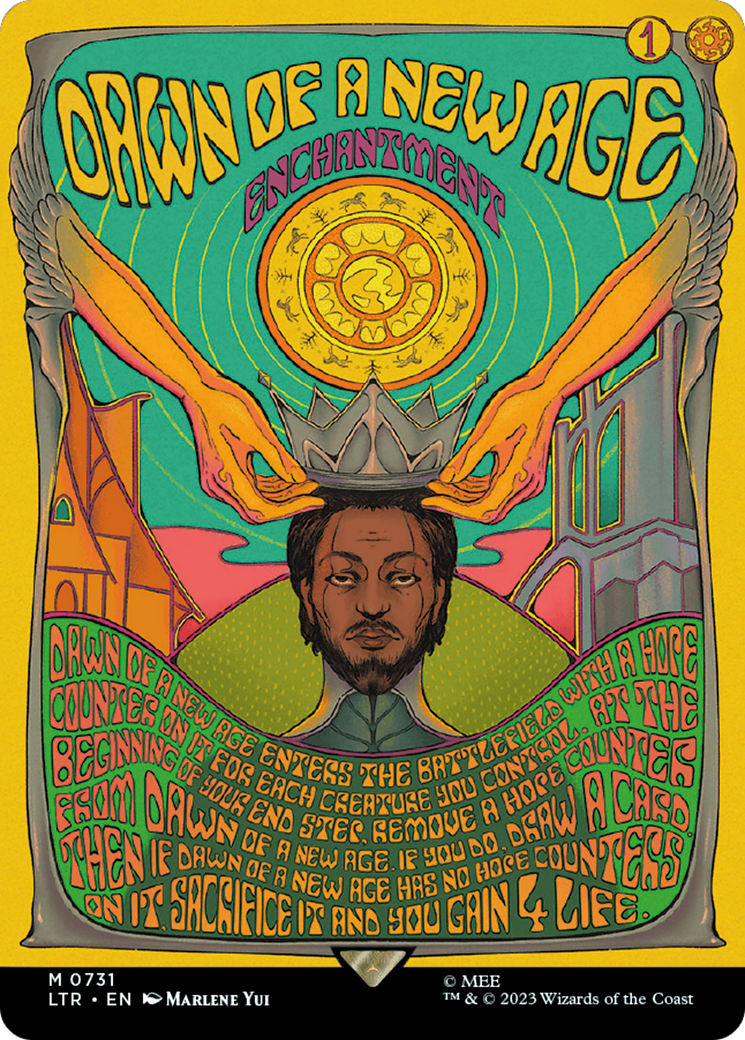 At the beginning of your end step, remove a hope counter from Dawn of a New Age. If you do, draw a card. Then if Dawn of a New Age has no hope counters on it, sacrifice it and you gain 4 life.